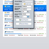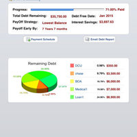 This App helps you organize,monitor and payoff your debt using debt Snowball method. You can analyze and model debt repayments to see when exactly you can become debt free. You can also Sync data between devices.