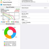 Debt Strategy helps you identify the best payoff strategy in order to pay down your debts fast. It also helps you track and pay off your debts, and execute on the strategy you choose. After entering your debts in the application, you can analyze how the choice of payment strategy or different extra amounts helps you pay off your debts sooner, and save on the total interest paid. Debt Strategy supports multiple strategies such as: