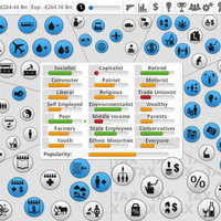 Despite being vastly detailed under-the-hood, Democracy 3 has a unique user interface that makes visualising the connections between laws, policies, voters and situations easy. A simple iconic-based view of your countries issues allows you to 'drill-down' through all the relationships between policies and voters to quickly analyse the impacts of your decisions. Your trade policy may affect GDP, which will affect unemployment, which will effect poverty, and thus crime, leading to a change in tourism, which affects GDP…