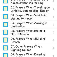 (Prayers When Exiting the house embarking for Hajj pilgrimage, When Traveling on vehicles, automobiles, Bus or airplanes. When Entering City of Mecca, When Sighting Ka'bah (Kaba), When Entering Masjidil Haram, When Beginning the Thawaf, When In front of Ka'bah (Ka'ba) Door with Ibrahim's tomb on the right side, After Sunnah pray behind Ibrahim's tomb, When about to drink Zamzam water, Prayers After finishing Sa'i, Prayers After throwing the three Jumrahs, Prayers When Entering Nabawi mosque, When Visiting the tomb of the prophet Muhammad Rasulullah SAW, and many more).