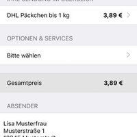 • Anzeige eines QR-Codes zum kostenlosen Druck der Mobilen Paketmarke in Postfilialen