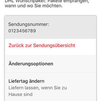 • Benachrichtigung bei Zustellung an einem Wunschort, beim Nachbarn oder in der Filiale und Details zu Packstation-Sendungen (inkl. mTAN)
