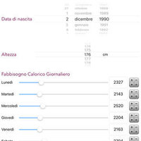 - Settare i vari target come limite calorie e percentuali macroelementi.