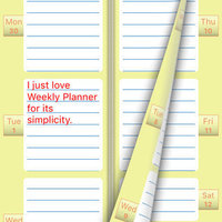 What distinguishes it from most electronic organizers is that it has no functions, which are not typical for your paper friend. In the Weekly Planner, you will not find complicated data entry mechanisms (you enter everything in ordinary text-typing mode) or cumbersome synchronizations with multiple calendars.