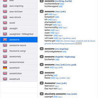 Dictionary for 51 language combinations, usable without an internet connection (offline dictionary). Vocabularies can be downloaded and updated within the app for free.