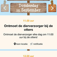 Ontmoet de dierverzorger, laat een vogelspin over je hand lopen, vaar met je fietsboot over de Expeditie-rivier en beleef nog veel meer. Er is van alles te beleven in het park! Alle evenementen vind je terug in het dagprogramma. Schakel de notificaties in, zodat je niets mist!