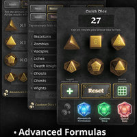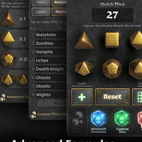 6) Three different Dice Throwing modes. "Quick" dice provides you with fast dice access and a sophisticated results matrix. "Advanced Formulas" allow the DM to create a vast combination of dice and bonuses. Finally "Custom" dice allows you to create your own custom made and weighted dice.