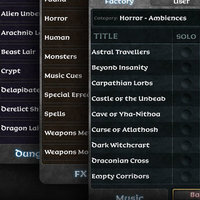 For example, with DMDJ you can create a horror mood by selecting the "Haunted Forest" environment preset, start at "low" intensity, change that to "medium" intensity and "night" while you are guiding your party to a crescendo and when ready, push the "high" intensity and play back a haunting "Distant Scream". That's awesome!