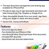 It allows you to mark up documents with highlights and handwriting, insert text, stamps, pictures or signature and share your documents with others through email or fax.