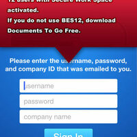 IMPORTANT NOTE: The Documents To Go for BES12 application WILL NOT OPERATE unless your organization has the necessary back-end BlackBerry Enterprise software. You also SHOULD NOT download the application unless your organization has authorized you to download, install and use it. Please contact your IT administrator for more information. NOTE: If you are looking for Documents To Go that will run on without this backend software, please purchase Documents To Go Premium Edition or download Documents To Go Standard Edition.