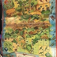 Dogfight is one of the American Heritage games in the "Command decision" series of wargames published by Milton Bradley circa 1961-65. Definitely not for the hardcore wargamer, Dogfight is a light version of WWI air combat. The Germans and Americans each get 6 biplanes divided into 2 squadrons of 3 planes each. Each squadron gets a hand of combat maneuver cards and players move one plane from each squadron engaging and evading each other. For each plane shot down you receive an ace token that entitles you to hold a larger hand of cards. Anti-Aircraft guns guard each home squadron and the lucky flyer has the opportunity to strafe the enemies planes on the ground. A great introductory wargame with easy to learn rules.
