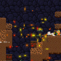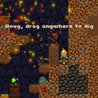 Now it's your turn. Help Doug dig deep down under the earth in the quest for shimmering jewels and precious gold. Go farther and deeper than any of your friends. Find more gold than anyone in the world. Oh but watch out for colossal cave-ins. No they're really colossal—you won't believe it. And creepy monsters. And bottomless pits. Ah, don't worry it's just a game.
