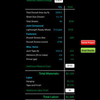 Drywall Calc Elite will save you time and give you the right answer every time. Not only will this app calculate total square footage but it allows you to customize material and labor prices so that you can instantly create a bid to provide to your client. Bid results can also be emailed with the click of a button.