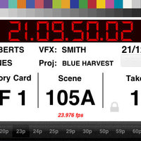Along with a color chart and selectable running timecode, DSLR Slate has all the traditional items for input such as Scene, Take, Framerate, Director, etc. DLSR Slate also provides unique items aimed specifically for DSLR cameras such as ISO Speed, Aperture, Shutter Speed, White Balance, Lens, Filter, and more. While being invaluable on set, these items also prove useful when shooting tests in varying lighting conditions.