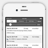 In the table view, can view and filter by distance, magnitude, and time all earthquakes that have occurred in the past 24 hours or 30 days. There is a magnitude slider to filter the earthquakes neatly. Tap any earthquake to see which cities are closest to the epicenter.