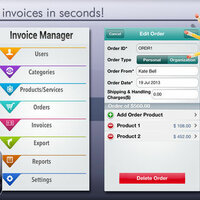 Also, you can edit them by adding or deleting products, adding shipping and handling charges or modifying any of the entries with just one tap!