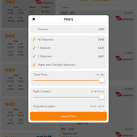 EasyFlights will compare flight prices for you and will find the best ones among thousands offers from hundreds airlines and travel agencies! Huge selections of filters for multiple parameters will let you find the flight that suits you best.