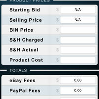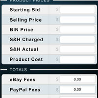 This App can calculate any and ALL Fees associated with ebay and paypal including the insertion, final value fees, auction upgrade fees, fixed price fees, PayPal fees, etc. It even allows for Buy It Now fees!