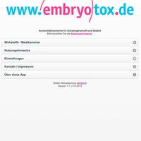 Embryotox richtet sich an medizinische Fachkreise, die Informationen über Arzneimittel in Schwangerschaft und Stillzeit benötigen. Außer den Patientinnen sind oft auch Ärzt_innen und Apotheker_innen verunsichert, ob ein Medikament in diesen sensiblen Zeiträumen angewendet werden kann. Diese App bietet Informationen zu mehr als 400 Wirkstoffen und eine Einschätzung zu deren Sicherheit und möglichen Risiken in Schwangerschaft und Stillzeit.