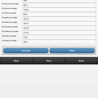 Special features include the ability to save calculated results, and the ability to share calculated results (for example, with classmates via email).