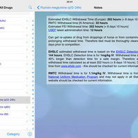 • There are notes on use in competition for each drug, including detection times published by the FEI and EHSLC