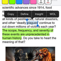 Underline and highlight content from the publications and articles. You can add Notes right next to content it relates to, and even tell the Note to expand the text to show in the article so you can read it immediately without clicking.