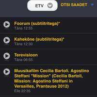 Real-time television and radio broadcasts from Estonian Public Broadcasting and a program archive for ETV, ETV2, Vikerraadio, Klassikaraadio, Raadio2, Raadio4, Raadio Tallinn, R2.2. Full-length daily news in Estonian, Russian and English, and TV and radio guide.