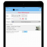 Clean, fast and super easy deposit/withdrawal/transfer transaction input screen without any unnecessary fields. The app allows you to enter an empty (zero amount) transaction, then you can enter/edit all the detail when you have time.