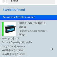 Thanks to the various search features, battery selection is made easy by simply entering any of the following vehicle information: Plate/registration number, vehicle make and model or the original battery part number. This includes EXIDE part numbers and some other well-known battery brands.