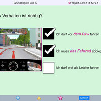- nach links/rechts über den Text der Fragen wischen = nächste/vorige Frage