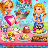Pick from tons of flavors, sweet candy toppings, and decorations. Can you make the coolest snow cone? The funniest corndog? The best donut ice cream sandwich? Make them all!