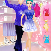 The final part of the makeover is the dressing room. Here you’ll choose the skater's sparkling dress, skates, stylish arm cuff, tights, and glistening bracelet. And if she’s competing in the much anticipated pairs competition, you can also choose her male partner for the event! What skin color, hair color, and costume will he have? It’s all up to you! So make them look like the perfect pair, and together they will dazzle the crowd!
