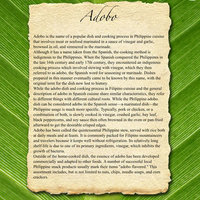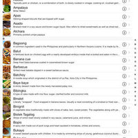 Want to know what dishes to expect when you try Filipino food? This reference of popular Filipino foods can ease your mind (and your stomach) by providing you very valuable information before you decide to put something unknown in your mouth. This is great for parties, travel, reference and fun!