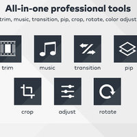 • Reverse play, Trim by Duration, Slow/Fast motion editor, Crop, Rotate, Flip-over, Voice-over, Audio Mixer, PIP, Color Tuning