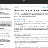 Finansavisen er Norges mest rendyrkede næringslivsavis. Her kan du lese ferske børs- og finansanalyser, samt holde deg oppdatert på valutakurser, oljepriser, entreprenørskap, eiendom, karriere og mye mer. Dessuten kan du hver dag lese Trygve Hegnars dagsaktuelle leder. Alt dette er tilgjengelig i appen fra kl. 22.00 dagen før papiravisen kommer ut.