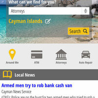 Search the Yellow Pages for businesses in your area or any city nationwide. Access business addresses, phone numbers, websites, email, ads, coupons and other enhanced listing data of our participating yellow page publishers. Sort by distance to find the closest results or sort by relevance of your search term. View results in a list view or toggle through results on a map. Zoom and scroll features in the map view allow users to find results in any area. Easily find local businesses anywhere in Cayman Islands with the Cayman iPhone/iPad Application.