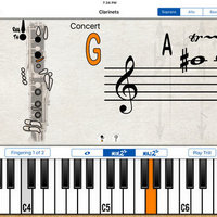 Pick a written note (touch the staff) and have the fingering displayed and concert pitch played on the piano.