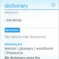 The leading Finnish English Dictionary and Translator for iPhone, iPad & iPod Touch * Selling over 500,000 dictionary apps * More than 78,000 translation pairs * High quality English & Finnish speech engine (via In-App Purchase) * Integrated Google/Bing Translate * Phrases & Synonyms * No internet connection required (except Google/Bing Translate & Wiki search)