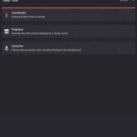 • Fireplace — Glowing fire with wood crackling as it slowly burns