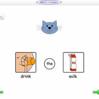 This format is especially powerful for children with speech delays and autism spectrum disorders who need strong visual support with as little background clutter as possible, and for use in speech therapy sessions. The format also is a terrific way to support early literacy for left to right orientation, reading (with text on feature) and word boundaries. Options include text on/text off, recording feature on/off, presentation of the phrase in 3 segments (verb + the + object) or 2 segments (verb + the object).