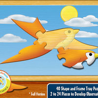 ● Thirty (30) words of animals and forty (40) shape and frame tray puzzles (full version only).