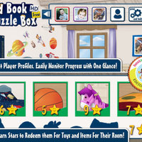“First Words Book and Kids Puzzles Box” keeps children engaged through a unique star reward system, where children earn a star for completing successfully a word or a puzzle. Every five stars they have the chance to redeem them for toys and items to decorate their own interactive iPad room. The items are decorative and toys that may be positioned anywhere in the room.