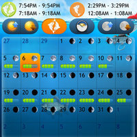 Get a forecast for best fishing times for your specific location. Display them in three different ways: on a calendar, time chart and dial.