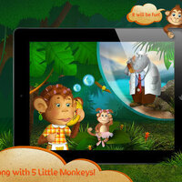The iconic song, "5 Little Monkeys", comes alive on your device! Marvelously fun and educational, 5 Little Monkeys encourages kids' language development, enriches their vocabulary, boosts cognitive pattern recognition and more, all through the popular nursery rhyme.