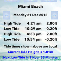 Track the tide times for the entire state of Florida, from Pensicola, Tampa, Key West, Miami and Jacksonville. In total 513 locations throughout the state are covered. Displays the low and high tides for the day, allowing selection of any date through to Dec 2016. it also shows the current tide height and the time to the next tide. The map uses your GPS to make it easier to select the port to display. No internet connection is needed for the tide times although the maps do require data to display. The sunrise and sunset times for the port selected are also shown. Ports include Fernandina Beach, Nassauville, Jacksonville, Welaka, Tequesta, Palm Beach, Miami Beach, Biscayne Bay, Florida Keys, Key West, Gulf Coast, Tampa Bay, Panama City, Pensacola and many more.