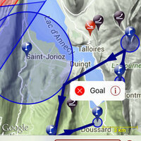 • A fully zoomable and scrollable map with the waypoints and optimised route. The map also shows start and landing spots, as well as restricted airspaces (with the Airspace Extension)