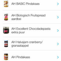 - De App is opgebouwd met meer dan 20 categorieën zoals ‘Broodbeleg’, ‘Rijst/Pasta/Noedels’, ‘Tussendoortjes’ etc.