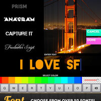 With just a few touches you can easily create amazing looking photos with inspirational quotes, informative text, or funny sayings. Text is easily positioned using pinch and twist gestures. Change colors and choose from over 120 fonts!