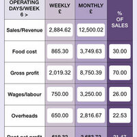 Finally, once all the data has been inputted into screens 1 and 2, a user can have an instant, accessible and user-friendly financial overview of a proposed or current catering business. Furthermore, this can help the user to become more aware of the financial challenges, financial risks and financial budgets that are critical to the on-going success of a catering business.