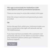 *** There are two ways to access the content in this app: Enter the unique username and password you were provided OR access the app from within your institution (make sure you're connected to the right wifi network).